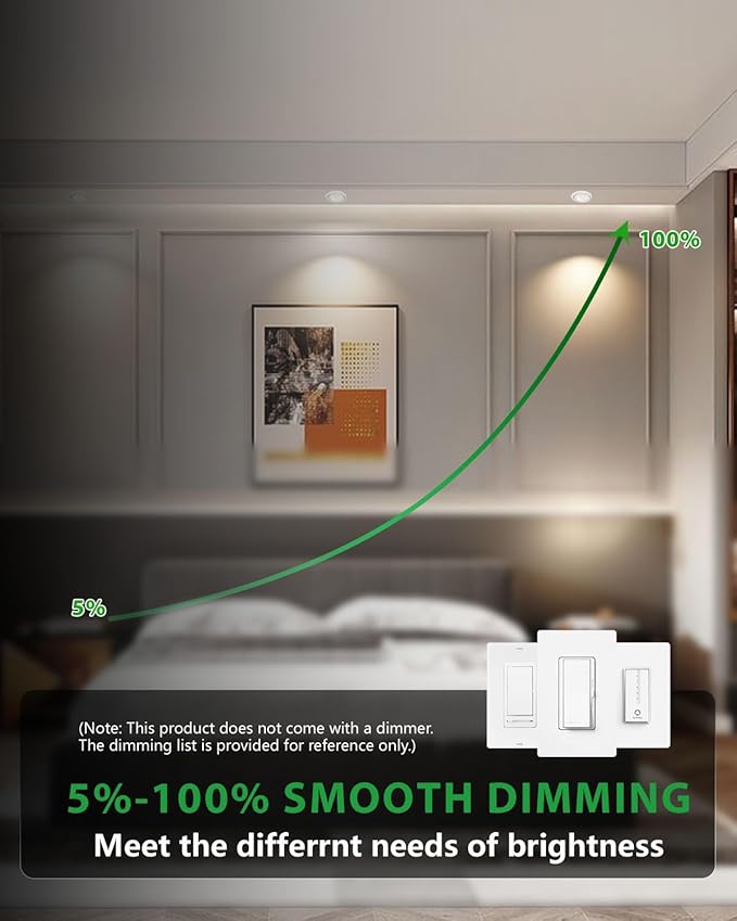 - โ ใ๐๐ฆ๐จ๐จ๐ญ๐ก ๐๐ข๐ฆ๐ฆ๐๐๐ฅ๐ ๐%-๐๐๐%ใEnjoy a flicker-free, quiet dimming experience compatible with most dimmers, perfect for various settings such as living rooms, kitchens, offices, and more.
