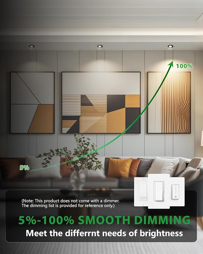 - โ ใ๐๐ฆ๐จ๐จ๐ญ๐ก ๐๐ข๐ฆ๐ฆ๐๐๐ฅ๐ ๐%-๐๐๐%ใEnjoy a flicker-free, quiet dimming experience compatible with most dimmers, perfect for various settings such as living rooms, kitchens, offices, and more.