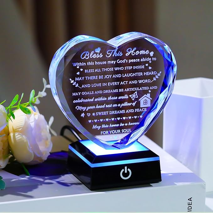 House Warming Gifts New Home Crystal Heart Keepsake with LED Base Housewarming Gifts for Women Men House Warming Gifts Couple Presents Home Blessing Warm Gift New Apartment