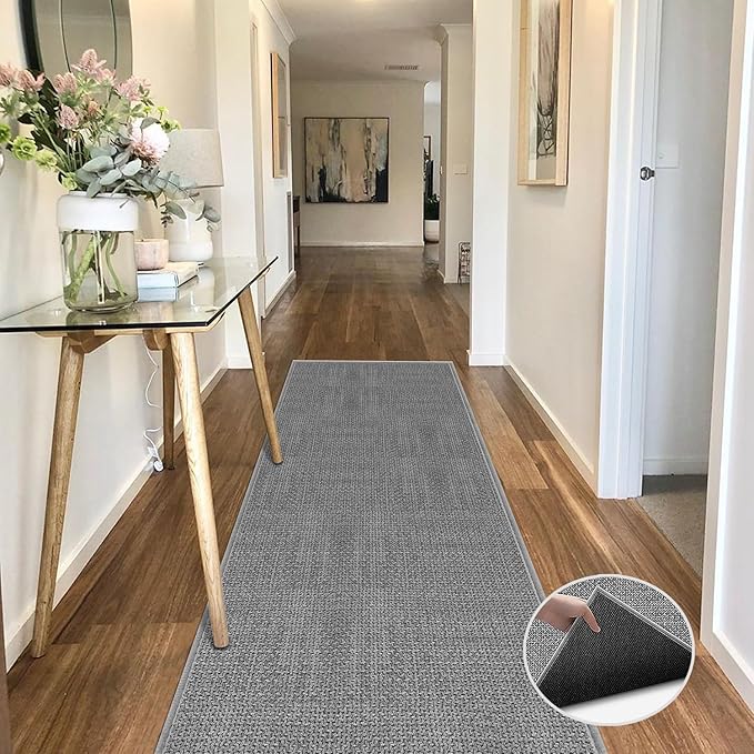 GOYLSER 20 ft Jute Entryway Runner, Rubber Backed Absorbent Extra Long Runner Rug for Hallway, Grey Laundry Room Runner Mat