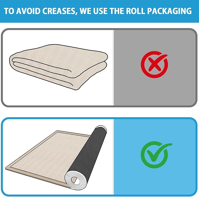- Water Absorbent: Jute hall mat with absorbent non-woven fiber fabric inter layer to provide the runner rugs with strong water absorption, for the surface of long runner mat are made of low pile jute, so hallway runner will not be entangled with the sweeping robot, then you can open and close the door arbitrarily, just put the thickness 0.3" of runner behind the door.