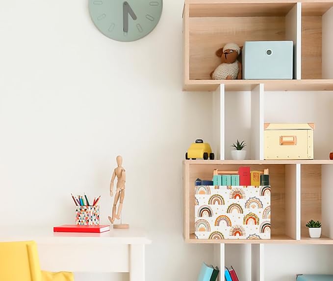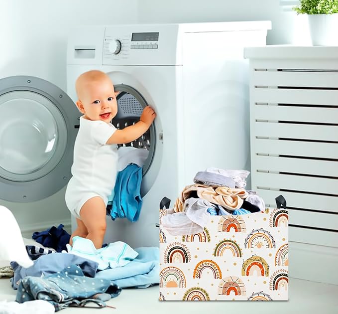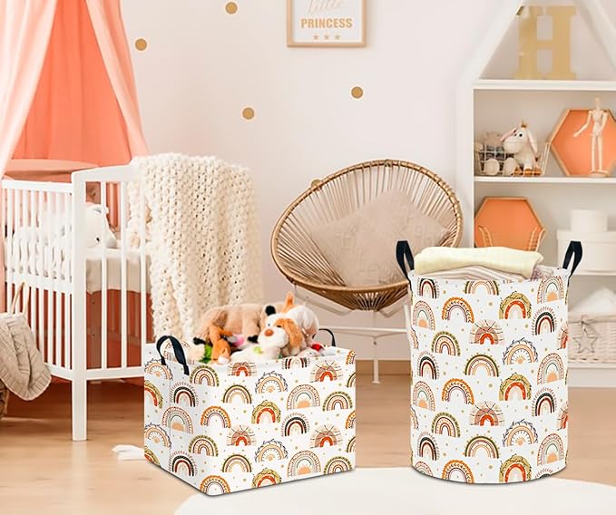 CLOCOR Rectangular Storage Basket Empty,Gift Basket for Kids,Waterproof Toy Bin with Handles,Room Decor(Boho Rainbow)