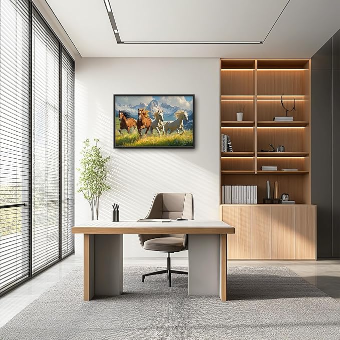 Framed Large Wall Art for Living Room, Running Horses Canvas Wall Decor, Large Landscape Picture Framed Painting, Modern Artwork for Bedroom Office 36L'' × 24W''