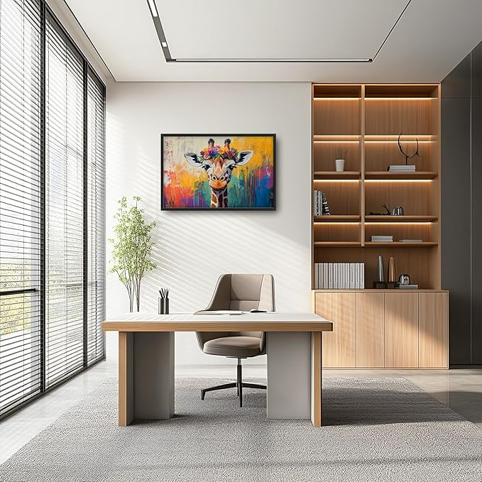 Framed Large Wall Art for Living Room, Banksy Deer Canvas Wall Decor, Large Giraffe Picture Framed Painting, Modern Artwork for Bedroom Office 36L'' × 24W''