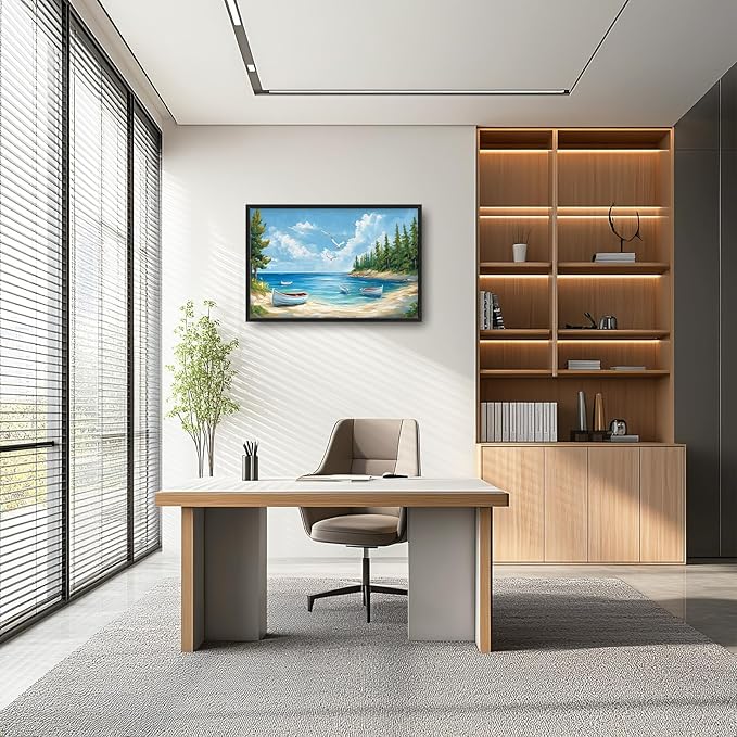 Framed Large Wall Art for Living Room, Beach Boat Canvas Wall Decor, Large Coast Sailboat Picture Framed Painting, Modern Artwork for Bedroom Office 36L'' × 24W''
