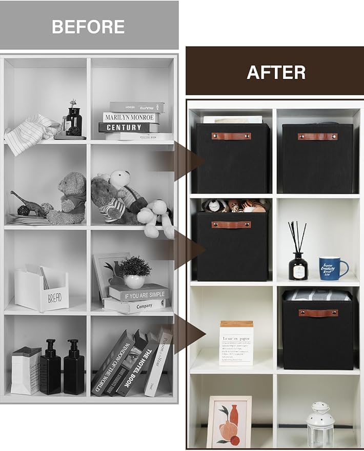 - MULTI-PURPOSE STORAGE CUBES: Ideal for a variety of basic household storage needs, helping to keep your living spaces neat. The storage cubes can be used as 11 storage cube bins for cube storage, towel storage, book/magazine organizer, and many other uses Due to the light when shooting difference and other natural reasons and display resolution is different, there is a little color difference is normal, You can rest assured that our product is premium quality