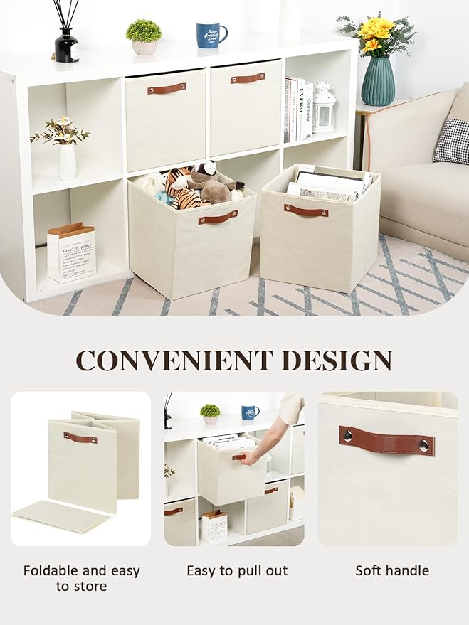 Temary Cube Storage Bins 4Pack Foldable Storage Baskets for Clothes Shelf Basket with Handles, Fabric Storage Boxes Organizer Bins for Home (Beige, 13x15x13 Inch)