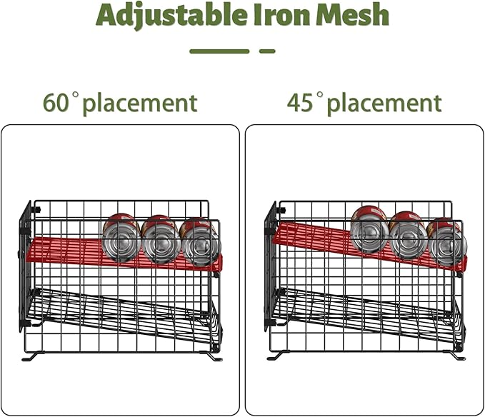 - STURDY AND DURABLE: Our can storage organizer is made of strong iron material, the iron wires on the peripheral edges are thickened, and divider mesh is fixed with screws for sturdiness and durability. Can holders for pantry can withstand the heavy cans and not easy to bend and collapse.