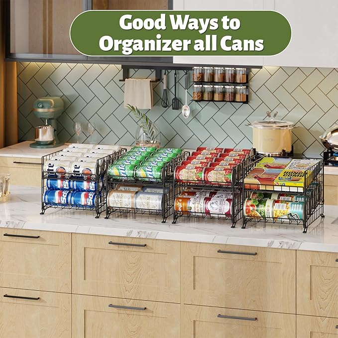 - STACKABLE: Our stackable can storage includes 2 metal connectors, which can be stacked or used separately according to the space of the kitchen cabinet or pantry, maximizing the use of limited space. Diversified use scenarios to give you more possibilities for your kitchen cabinets or pantry.