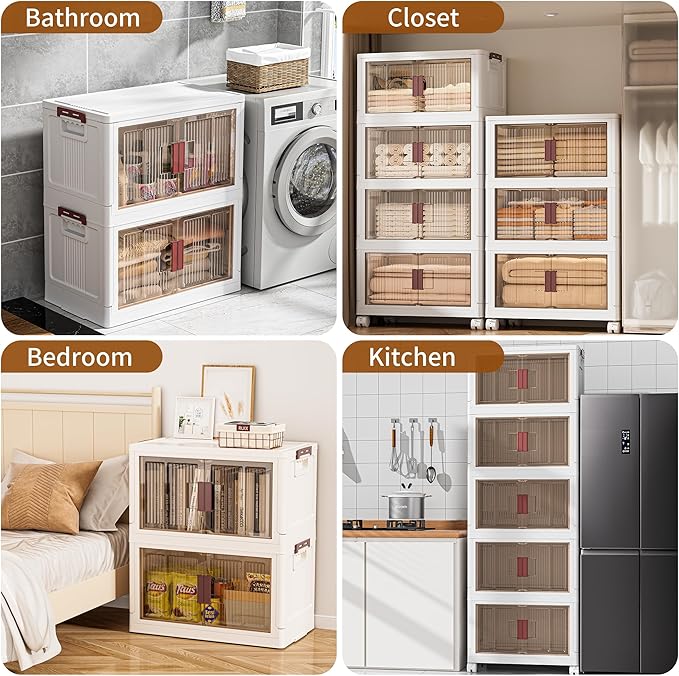 JOYWAVE Storage Bins with Lids,465QT Collapsible Plastic Bins,Closet Organizer and Storage Drawer,3 Pack Cubes