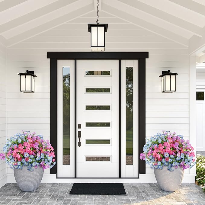 - 【All-Weather Durability】Made from UV-resistant silk and premium plastic, these fake flowers withstand blazing summer sun, torrential rains and humidity, strong winds, and frigid winter snow and ice without fading or damage. Designed for year-round use, the faux flowers retain vivid colors and stay vibrant—no matter the season