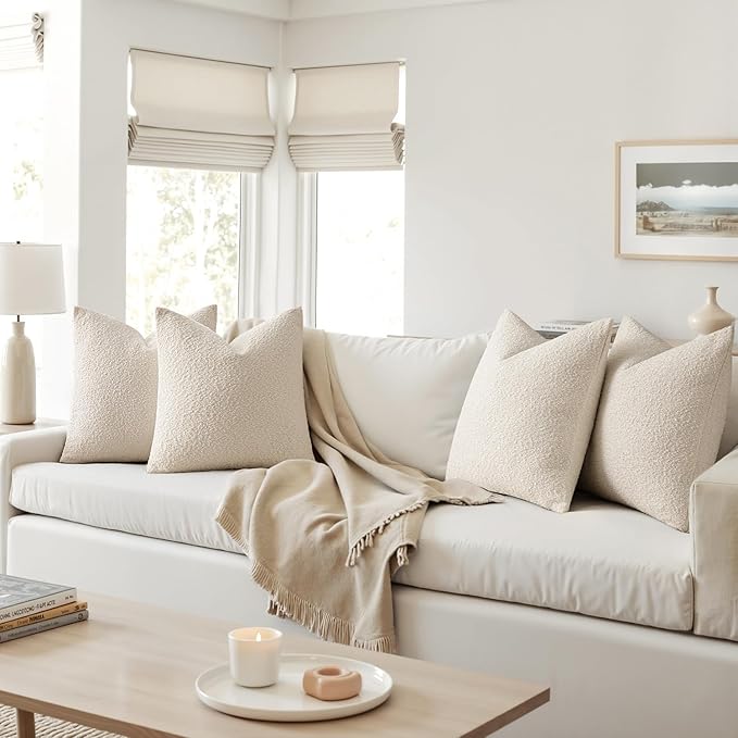 MIULEE Pack of 4 Decorative Textured Boucle Throw Pillow Covers 20x20 Inch Beige Accent Solid Pillow Cases Soft Couch Cushion Covers for Modern Farmhouse Boho Chair Sofa Bed Livingroom Home Decor
