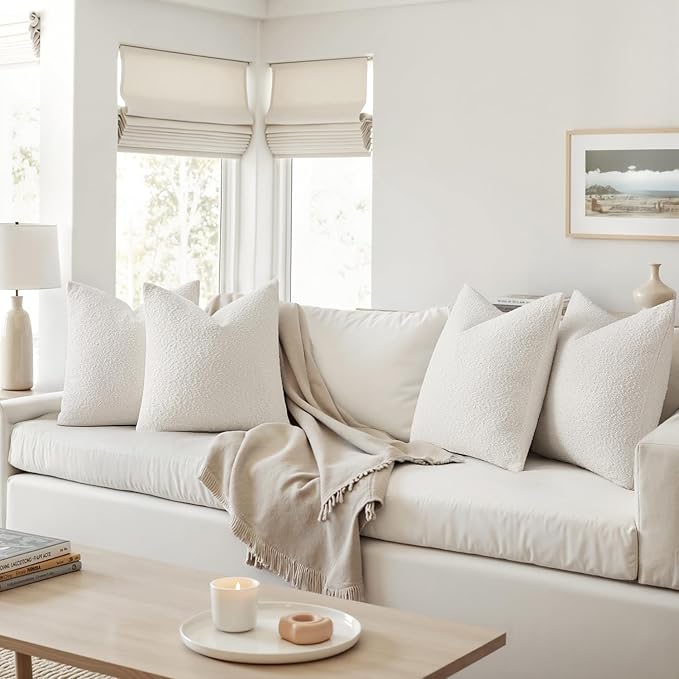 MIULEE Pack of 4 Christmas Decorative Textured Boucle Throw Pillow Covers 18x18 Inch White Accent Pillow Cases Soft Couch Cushion Covers for Modern Farmhouse Boho Chair Sofa Bed Livingroom Home Decor