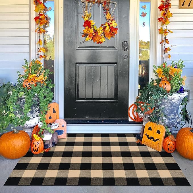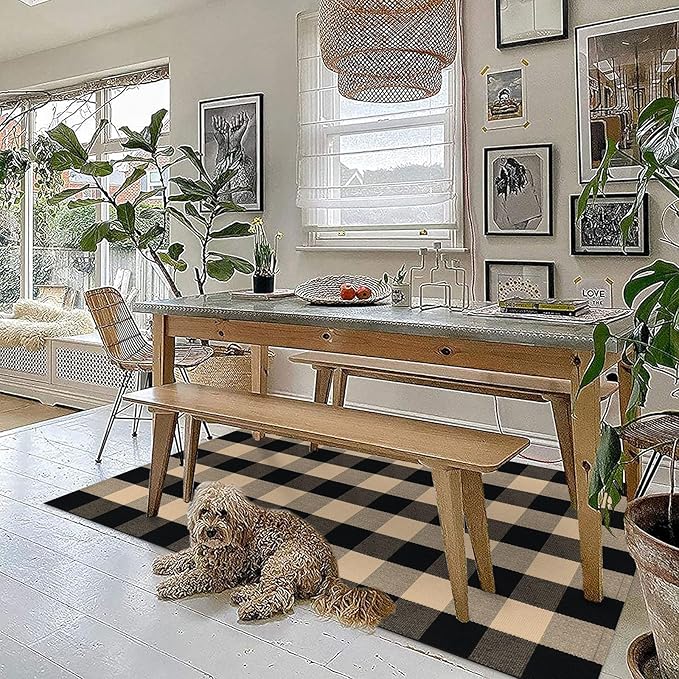 - Durable Cotton Blend: KOZYFLY buffalo rug is made from a soft, durable cotton-polyester blend with a 0.14-inch pile, perfect for entryways. Since it lacks a non-slip backing, recommend using a non-slip pad in high-traffic areas to prevent movement
