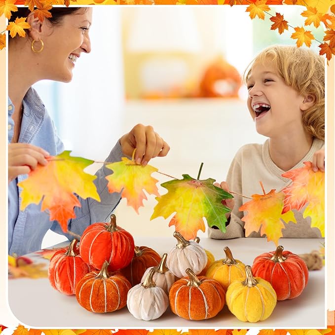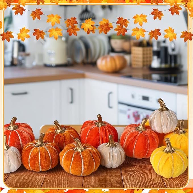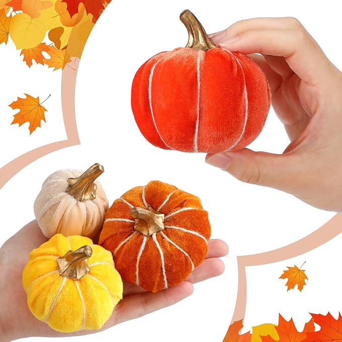 - Soft Velvet Resin Craftsmanship: each pumpkin is handcrafted from soft velvet fabric with a foam base and features a resin stem, giving these artificial pumpkins a lifelike texture; Keep away from fire due to velvet and foam materials