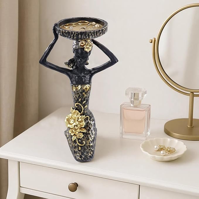- 【Elegant Cultural Statement】 This kneeling African lady figurine with a serving tray blends graceful posture with bold heritage, symbolizing hospitality and feminine strength.