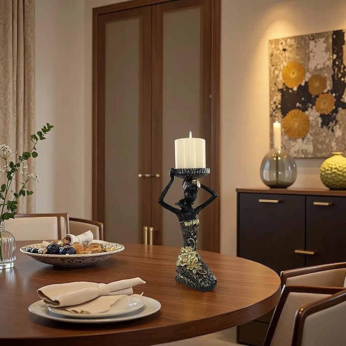 African Lady Figurine Candle Holder with African Tribal Totem for Wedding,Church,Holiday Decor-African Decorative Women Statues, Candlestick Holder for Home and Table Decor(404-Black)