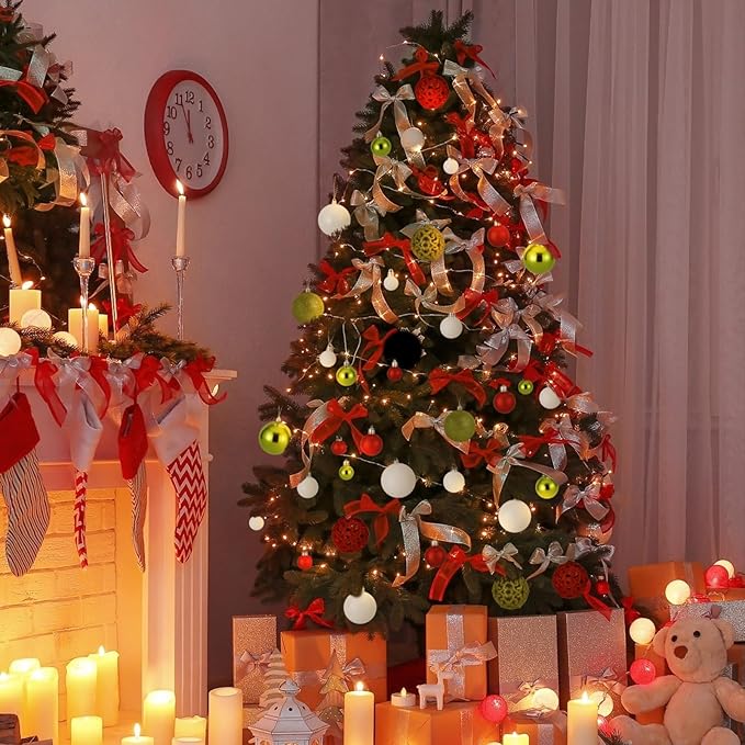 Christmas Balls Tree Ornaments, Shatterproof Christmas Decorations Set with Reusable Hand-held Gift Package for Holiday Xmas Tree Decor(Red, Green & White)