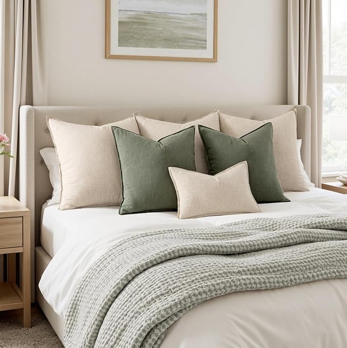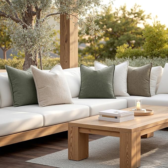 MIULEE Decorative Linen Pillow Covers 18x18 Inch Olive Green Boho FarmhouseNeutral Couch Throw Pillows for Bed Pack of 2 Accent Outdoor Pillowcase Modern Sofa Cushion Livingroom Home Decor