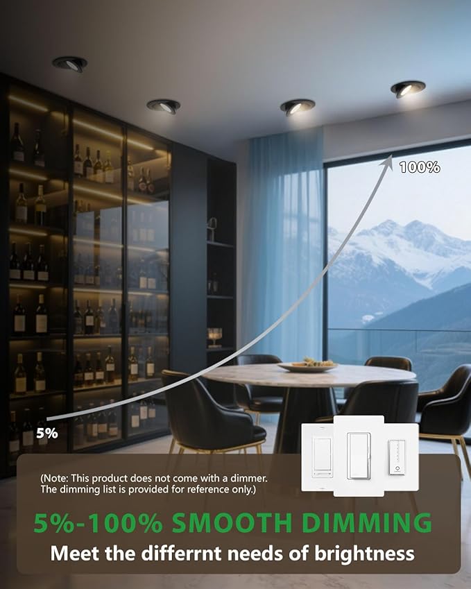 - โ ใ๐๐ฆ๐จ๐จ๐ญ๐ก ๐๐ข๐ฆ๐ฆ๐๐๐ฅ๐ ๐%-๐๐๐%ใEnjoy a flicker-free, quiet dimming experience compatible with most dimmers, perfect for various settings such as living rooms, kitchens, offices, and more.