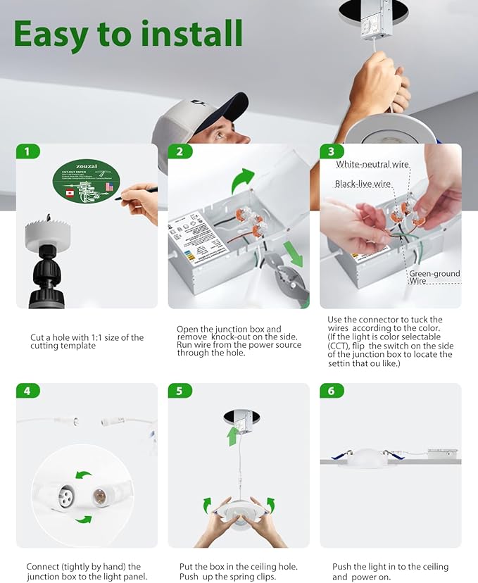 zouzai Second Generation 5CCT LED Gimbal Led Recessed Light with Junction Box, 360°+90° Adjustable Directional Eyeball Lighting, Dimmable, 2700K-5000K,ETL&Energy Star (White 1 Pack, 4 inch)