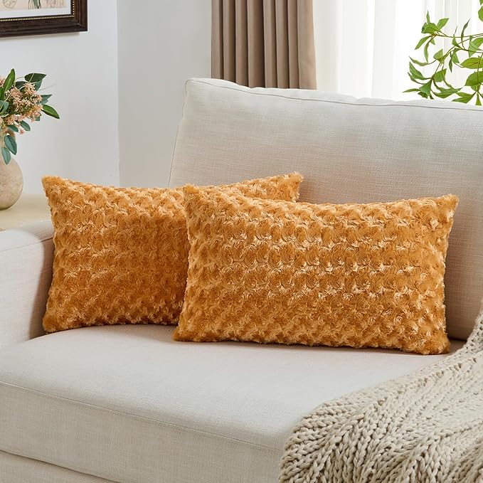 FUTEI Brown Decorative Throw Pillow Covers 12x20 Inch Set of 2,Soft Solid Rose Textured Lumbar Pillow Case,Modern Home Decor for Couch Sofa Bed Living Room