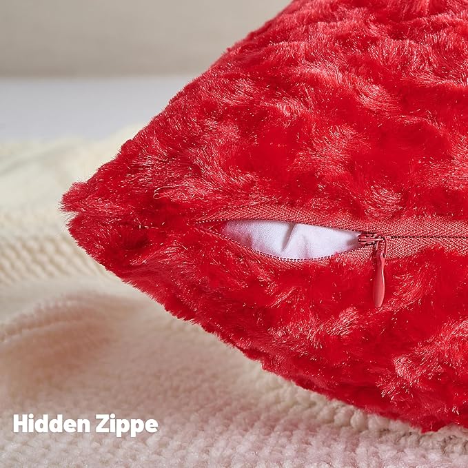 FUTEI Red Decorative Throw Pillow Covers 20x20 Inch Set of 2,Soft Solid Rose Textured Cushion Case,Modern Home Decor for Couch Sofa Bed Living Room
