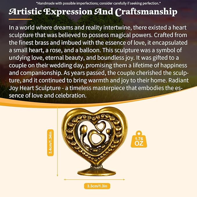 - Charming Vintage Brass Design: Radiant Joy Heart Sculpture, a vintage masterpiece crafted from pure brass, captures the essence of timeless elegance.