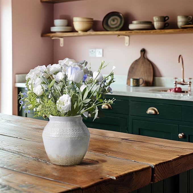 Quoowiit Ceramic Rustic Farmhouse Vase, White Distressed Flower Vase for Home Decor, Boho Decorative Vases for Centerpiece Table Decorations, Vases for Living Room Kitchen Entryway Mantle Shelf Decor
