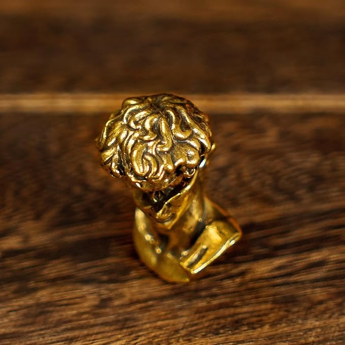 - Ideal Decor for Any Space: Each curve and line of the sculpture is a testament to the artist's mastery, showcasing the beauty of solid brass in its purest form. Imagine a story unfolding: David, in his dualistic form, posing with confidence, his eyebrow bone and nasal bone standing out, ready to captivate your space with his vintage charm.