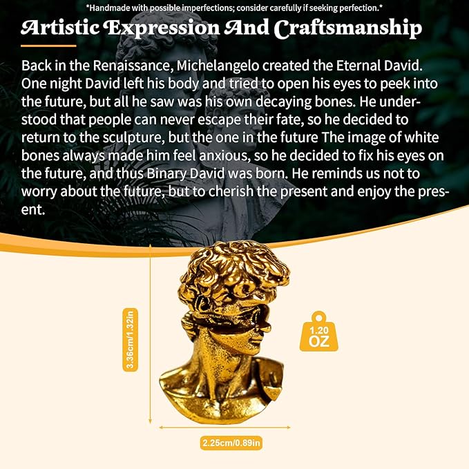 - Eye-catching and Delicate Design: Measuring 0.89 x 1.32 inches and weighing 1.20 ounces, this charming desk ornament is the perfect size for any surface. charm of our Distinctive Dualistic David Sculpture is sure to catch the eye of anyone who sees it.