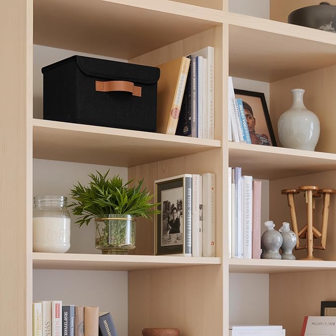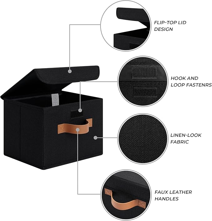 GRANNY SAYS Small Storage Bins with Lids, Small Storage Boxes, Shelf Baskets for Shelf, Collapsible Storage Bins for Living Room, Bedroom, 10x8x7 Inch, Black, 2-Pack