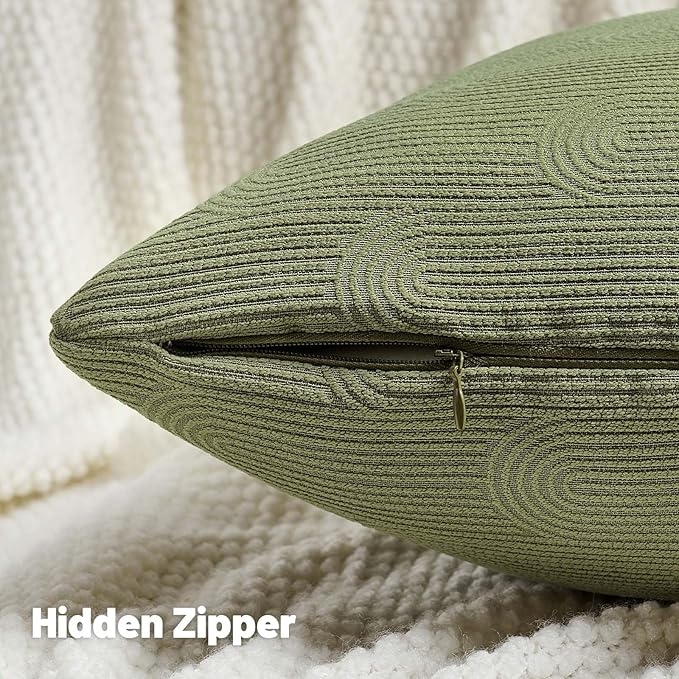 FUTEI Moss Green Chenille Decorative Throw Pillow Covers 26x26 Inch Set of 2,Soft Cozy Striped Geometric Patterns Euro Pillow Sham,Modern Home Decor for Couch Bed Living Room