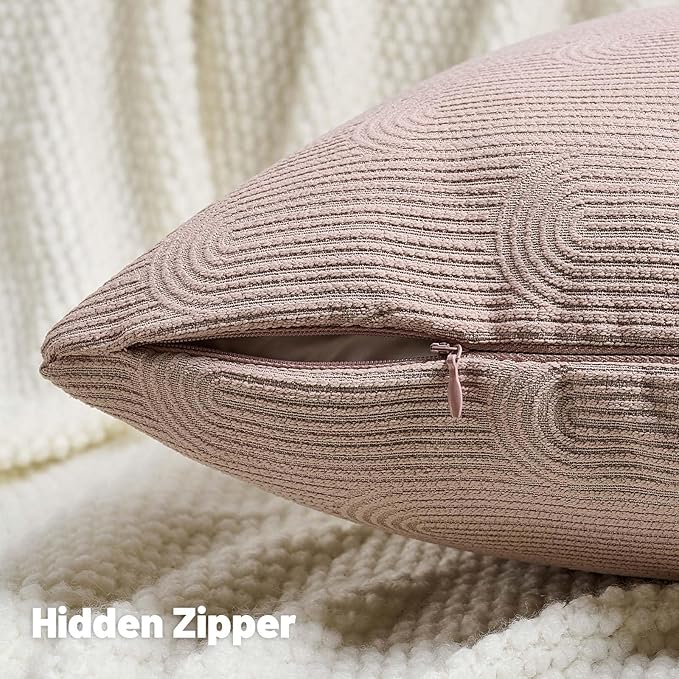 FUTEI Pink Chenille Decorative Throw Pillow Covers 18x18 Inch Set of 2,Soft Cozy Striped Geometric Patterns Cushion Case,Modern Home Decor for Couch Bed Living Room