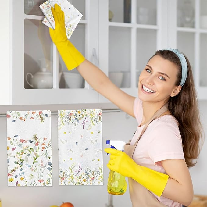 Spring Wildflower Kitchen Towels Dish Towels Set of 2,Floral Hand Towels 18x28 Inch Drying Dishcloth,Summer Holiday Dish Towels for Kitchen Bathroom Home Decor Housewarming Gifts