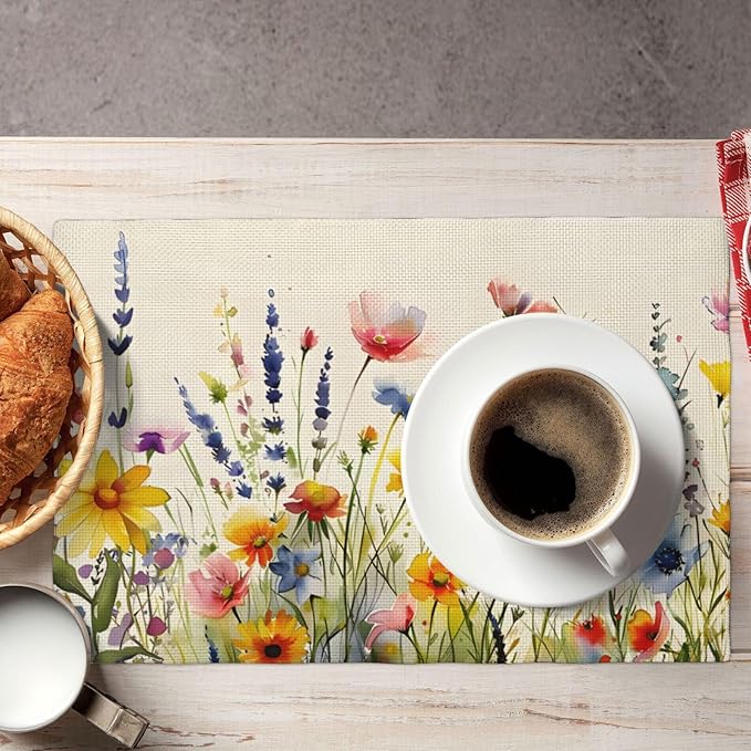 Daisy Lavender Floral Spring Garden Placemat Set of 4,12x18 Inch Garden Plants Linen Washable Fabric Table Mats for Holiday Decoration Kitchen Dining Table Place Mats