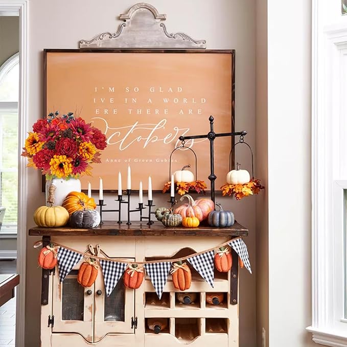 - More Occasions: These fall floral bouquet suits for home decor, such as: living room, bedroom, dining room, study, nursery, vase, fall festival, Thanksgiving decorations, wedding dining table decor, kitchen flower arrangement, and it also match different house decor style such as farmhouse style, modern simple style