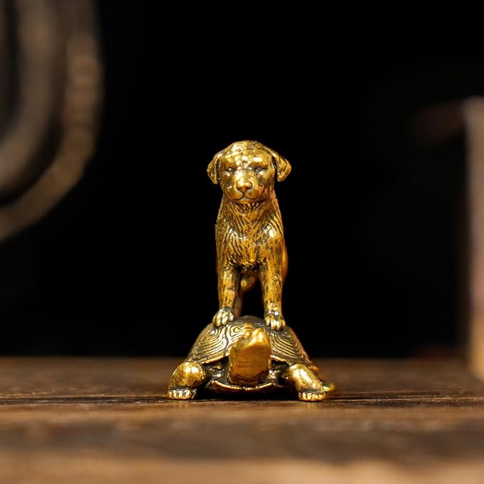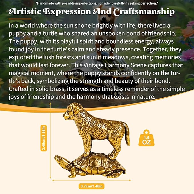 - Product little story: Long ago, in a world ruled in harmony, a little dog and a turtle developed an unbreakable bond. This brass sculpture captures that moment of eternal unity and love.