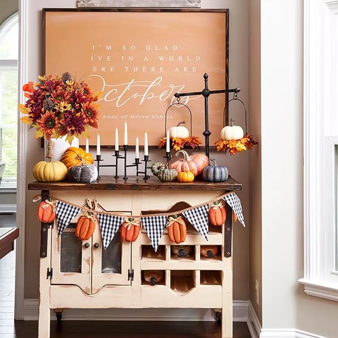 - More Occasions: These fall floral bouquet suits for home decor, such as: living room, bedroom, dining room, study, nursery, vase, fall festival, Thanksgiving decorations, wedding dining table decor, kitchen flower arrangement, and it also match different house decor style such as farmhouse style, modern simple style