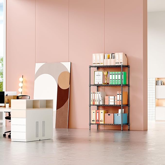 IZEUK 4 Tier Black Metal Storage Shelves, Heavy Duty Wire Shelving Rack for Garage, Kitchen, Bathroom, or Laundry Organization, 1000 lbs Capacity, 13.8" D x 35.4" W x 59.5" H