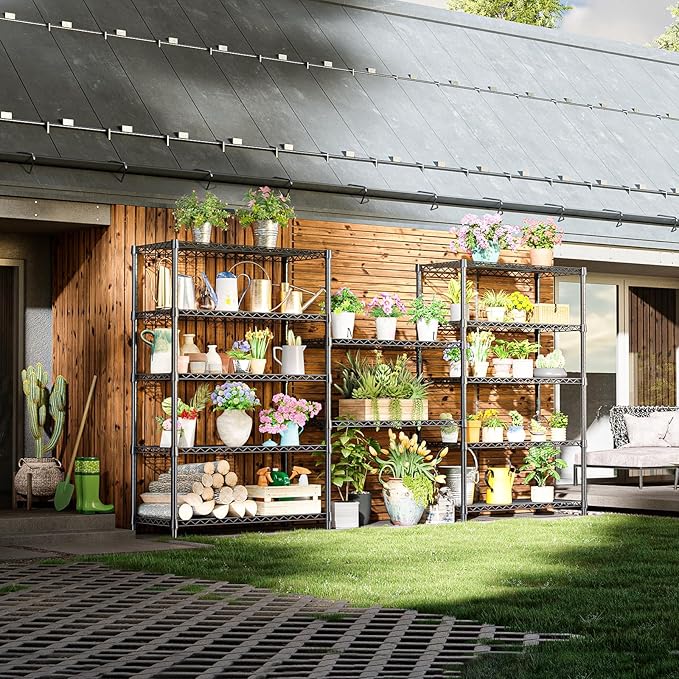 - 【Sleek Black Finish – Modern & Durable Look】This IZEUK 5-tier shelving unit features a classic black powder-coated finish, adding a sleek, modern touch that blends seamlessly into any space. The black color not only enhances visual appeal but also provides excellent resistance to rust and dirt, making it ideal for long-term indoor and garage use.