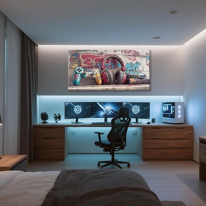 Cool Gaming Wall Art Retro Video Game Watercolor Posters Print Artwork Colorful Neon Gamepad Canvas Art Wall Decor Painting Picture For Bedroom Game Room For Boys Home Wall Decor 24 X 48 In