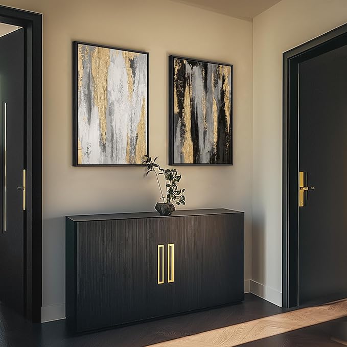 - [Home Decor Aesthetic]: This set of modern minimalist black and white gold abstract canvas wall art set is an ideal wall decoration for entryway, living room, dining area, bedroom, or office—anywhere you want to add both artistic flair and practical charm in one thoughtful design