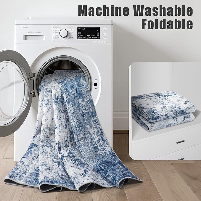 - Machine Washable Rug: Say goodbye to hidden dirt and cleaning hassles. The low soft pile of this 5x7 rug keeps most dirt on the surface, making it easy to clean with a carpet brush.The added bonus of it being machine washable makes it a breeze to maintain and saves you time. 6'x9 'and above are recommended to use nearby commercial laundry rooms