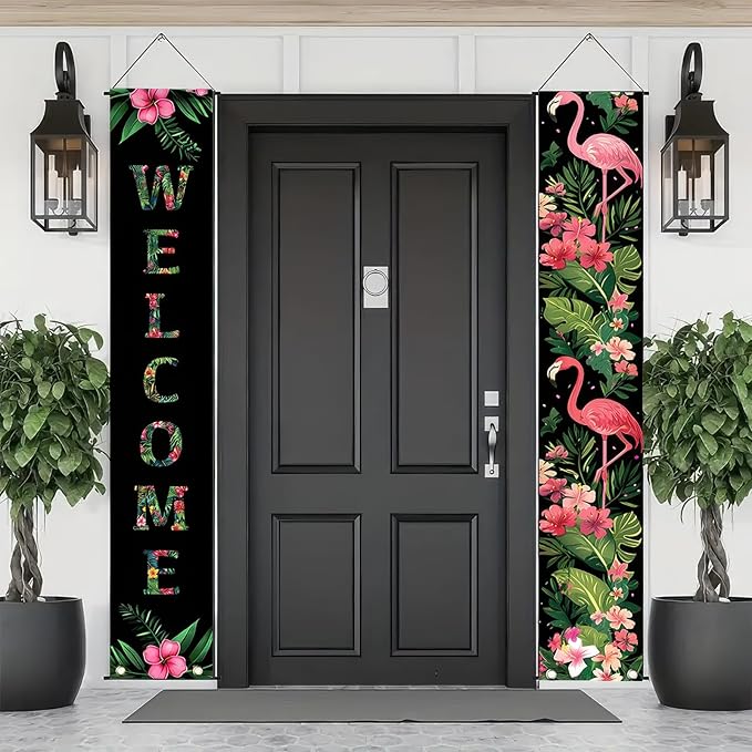 - 【Vibrant Summer Design】Summer banner features the "WELCOME" banner word in large, stylish letters on a black background, adorned with tropical flowers. The "SUMMER DAY" banner showcases the phrase with a charming pink flamingo surrounded by tropical flowers, evoking a laid - back summer atmosphere.