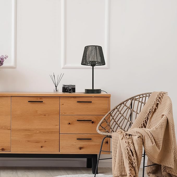 - 【Boho Rope Lamps Set of 2】 Black Fiber Rope + Inner Fabric + Strong Metal Frame + Premium Quality Bulb & Cable. Designed to infuse warmth and coziness into any space filtering the light in an elegant and decorative way. It brings a bohemian minimalist touch to your decor