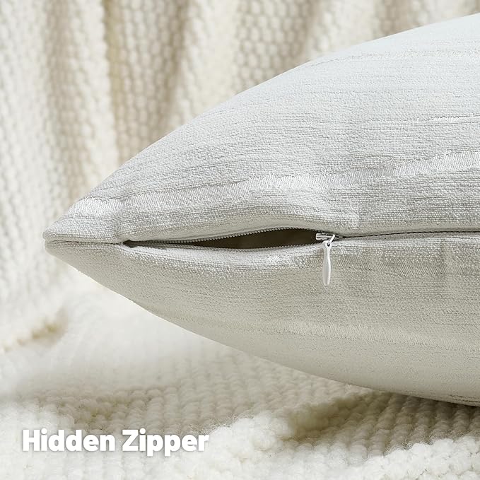 FUTEI White Chenille Decorative Throw Pillow Covers 20x20 Inch Set of 2,Soft Embossed Striped Textured Cushion Case,Modern Home Decor for Couch Bed Living Room