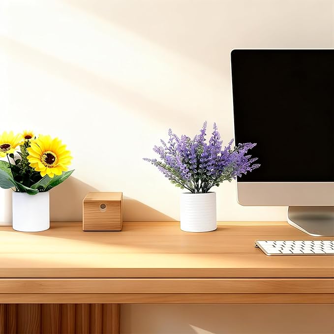 - Ready-to-Use Home or Office Decor - The whole artificial plants measure 9.45" tall and 9" wide,includes a modern white pot ( 3" tall and 3" diameter ) – simply unbox and display. Ideal for desks, shelves, coffee tables, or as a bathroom accent. No assembly or extra supplies needed.