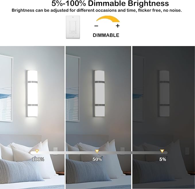 - 【Smooth Dimming】 The led wall sconces set of 2 can flicker-free triac dimming fully, adjust brightness from 5% To 100% with compatible dimmer switch(Not Included) to suit different needs, quite convenient for daily use