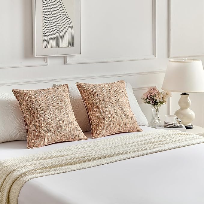 FUTEI Rust Decorative Throw Pillow Covers 20x20 Inch Set of 2,Soft Chenille Tweed Textured Cushion Case,Modern Home Decor for Couch Bed Living Room